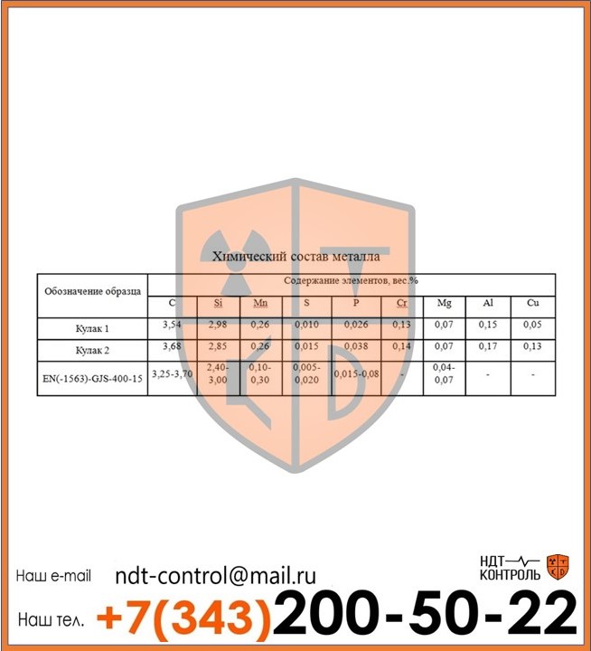 Лаборатория неразрушающего контроля «НДТ-контроль» проводит эффективный анализ состава металла в Орехово-Зуево. Предприятие располагает всем необходимым для высокоточного определения химического состава, количественного содержания и качественных свойств веществ, примесей и элементов, содержащихся в металлических сплавах и сталях. Эксперты компании гарантируют полный контроль над качеством металлических изделий, а также детальную экспертизу состава металла. Диагностика методами неразрушающего контроля позволяет не только вынести заключение о качестве, составе и свойствах металлов, но выявить причины появления дефектов или неисправностей на металлических конструкциях и изделиях из стали. Узнать подробную информацию о методах НК, стоимость анализа химического состава металлов, а также перечень услуг, предоставляемых лабораторией «НДТ-контроль» можно узнать на сайте, или у консультантов компании по указанным в разделе «Контакты» телефонам.